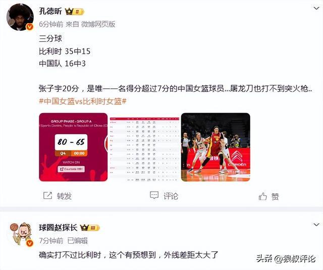 媒体人球圈赵探长发文点评:确实打不过比利时,这个有预想到,外线差距太大了。